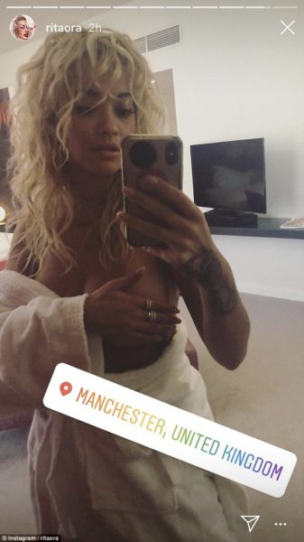 British pop princess, Rita Ora took things up a notch early this monday morning as the beauty set pulses racing by posting a topless picture of herself on her Instagram story.