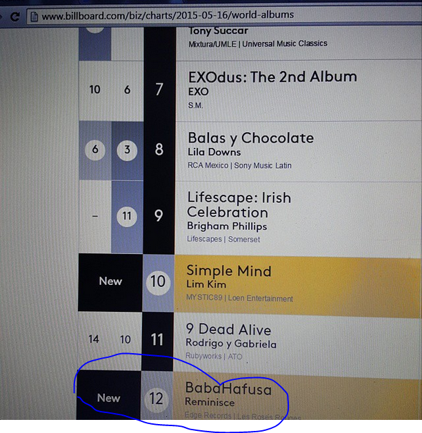 Indigenous language rapper, Remilekun Khalid Safaru otherwise called Reminisce, is now No. 12 on the Billboard World Music Albums Chart with his 3rd studio album, Baba Hafusa which was released on April 30, 2015.