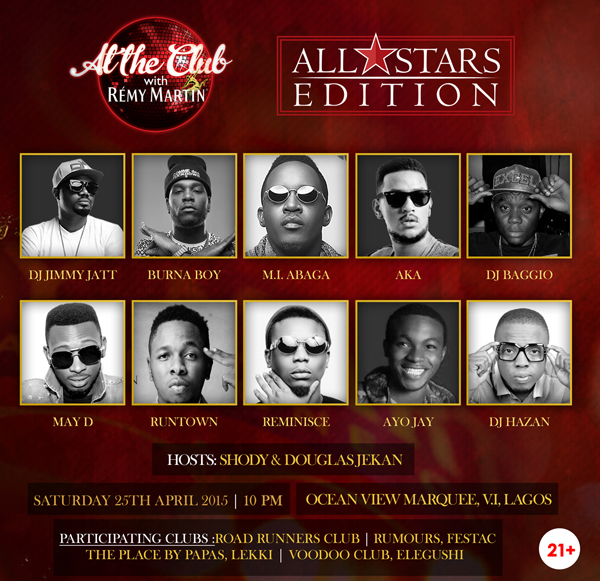The first dance-off of the year is set to kick-off on the 25th of April at the Oceanview Marquee where the #AttheclubwithRemy All-star edition will also be taking place. The all-star party will feature performances from MI, AKA, Burna Boy, Reminisce, Runtown, Mr May D, Ayojay and exciting mixes from three DJs: Cool Dj Jimmy Jatt, Deejay Baggio and Elegushi’s finest, DJ Hazan.
