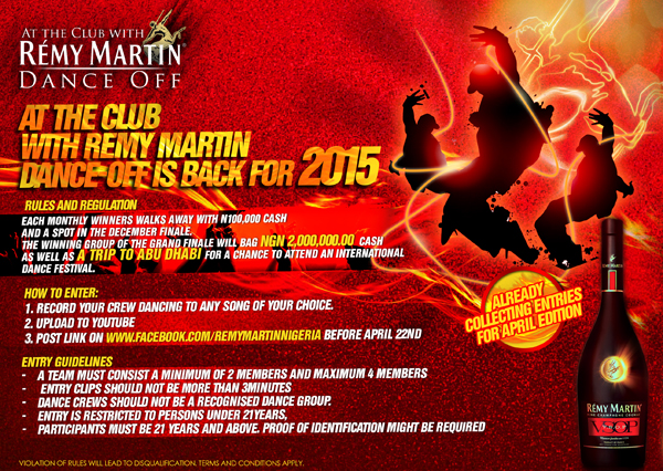 Interested dancers can go to http://fb.com/RemyMartinNigeria to get all the rules and regulation on how to enter the dance off and win big.