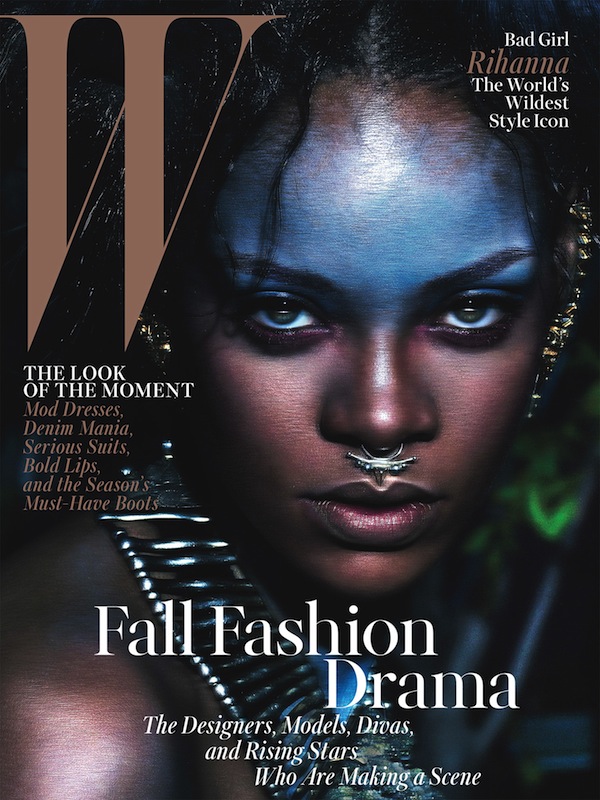 The Bajan bad girl wore pieces from Donna Karan New York dress; Ashley Lloyd headdress, Amrapali ruby and diamond ear cuffs, Meadowlark septum ring, Stephen Dweck sterling silver and pyrite necklace.