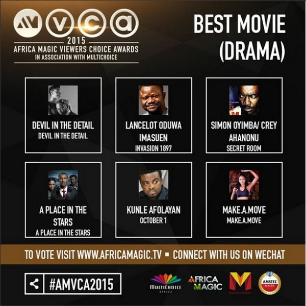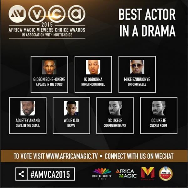 So far, quite a number of Nollywood stars and 2014 movies have been unveiled at the event, with Gideon Okeke, Richard Mofe Damijo, Mercy Johnson, IK Ogbonna, Kunle Afolayan, Ireti Doyle, Wale Ojo, Mike Ezuruonye, OC Ukeje, Ivie Okujaye, Joselyn Dumas, Linda Ejiofor and others nominated for the 2015 AMVCAs.