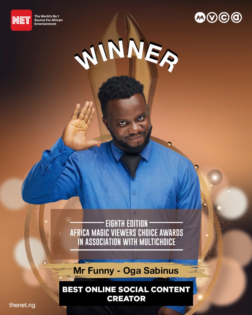 Online skit maker and digital content creator, Emmanuel “Oga Sabinus” Ejekwu, has won the inaugural Best Online Social Content Creator at the eighth edition of the Africa Magic Viewers Choice Award.