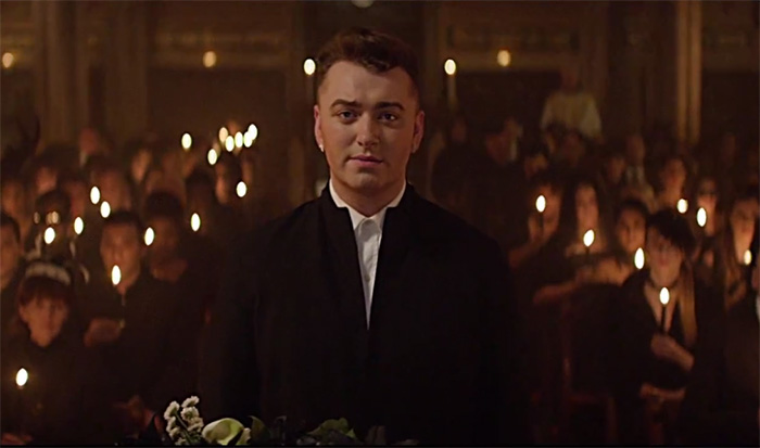 Halfway through, we see a flashback to his joyous wedding at the same church before cutting back to a somber Sam sitting alone. He dedicates the stirring visuals to ‘gay and transgendered men and women all over the world.’