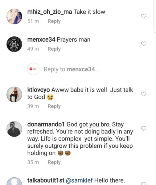His fans have however reached out to him on his page to offer some words of encouragement to him.