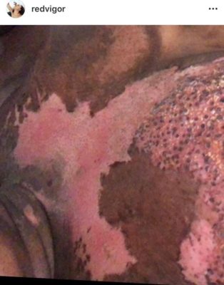 See photos of her burnt skin below