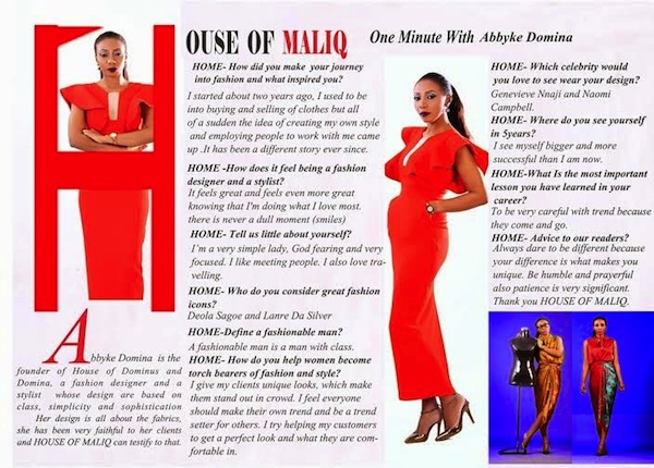 Afro pop and Dancehall singer Sean Tizzle and Abbyke Domina are on the cover of July/August 2014 edition of House of Maliq Magazine.