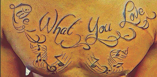 In December 2014, Difference Entertainment’s lead act, Sean Tizzle got his first ever tattoo on his chest while he was in South Africa for the 2014 edition of the Channel O Music Awards. His first tattoo simply had the words; ‘Live what you love’ with a number of musical notes beneath the words.