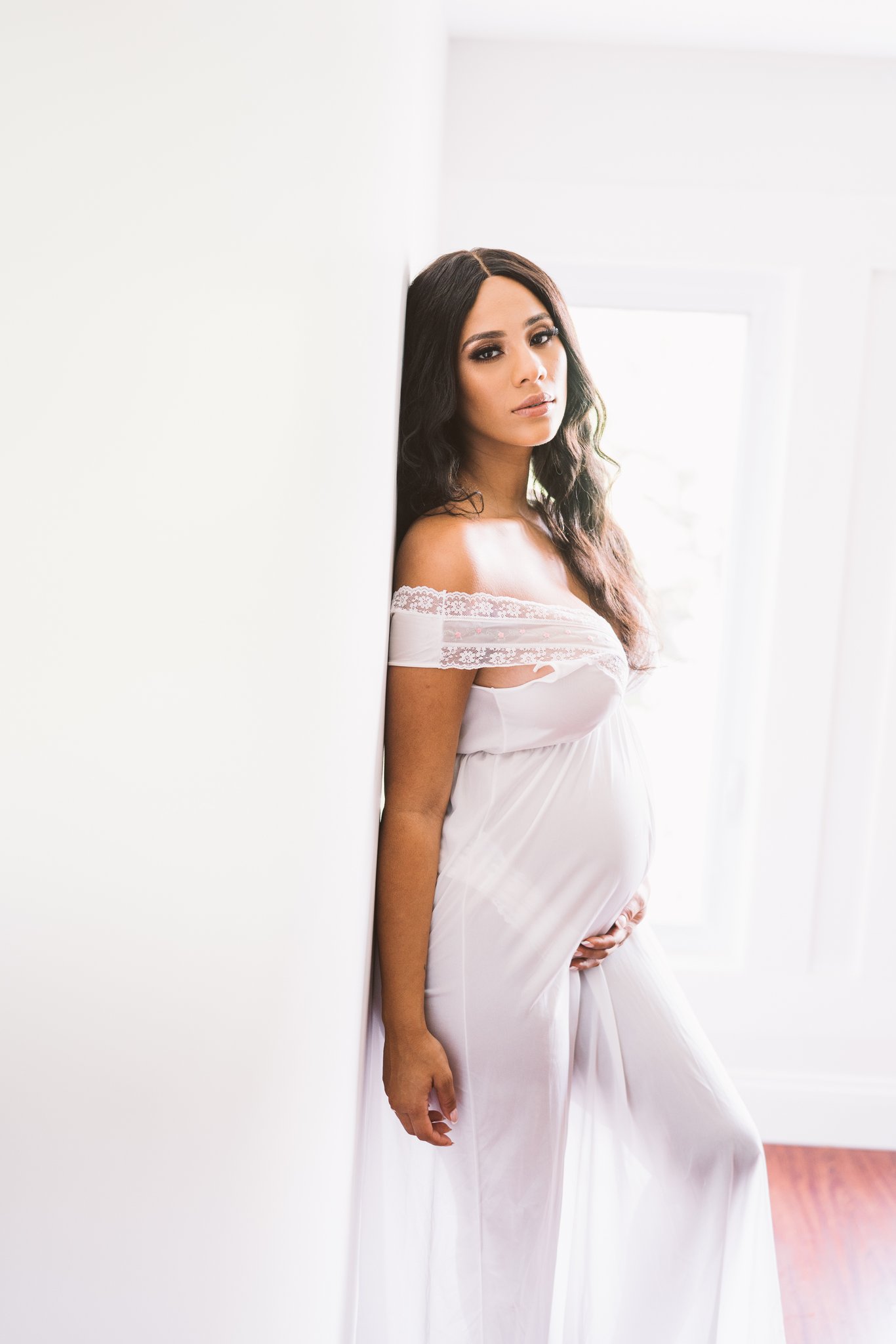 The couple used an all-white photoshoot to reveal the baby bump and looked adorable in the photos.