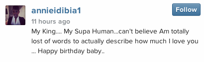 ‘My King…. My Supa Human…can’t believe Am totally lost of words to actually describe how much I love you … Happy birthday baby’.