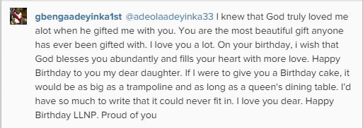 Top Nigerian comedian and compere, Gbenga Adeyinka The 1st’s daughter, Adeola Adeyinka is a year older today, January 28, 2015. And in celebration of his daughter’s day, the doting father took to social media to offer some prayers for his jewel.