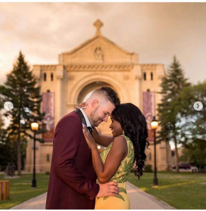 A Nigerian female chef and her white husband-to-be are currently steaming hearts online with their lovely pre-wedding photo shoot.