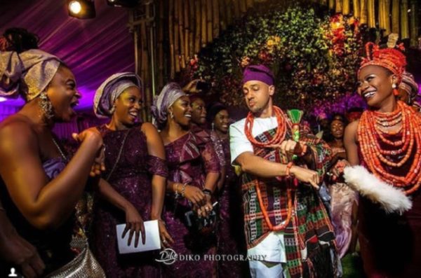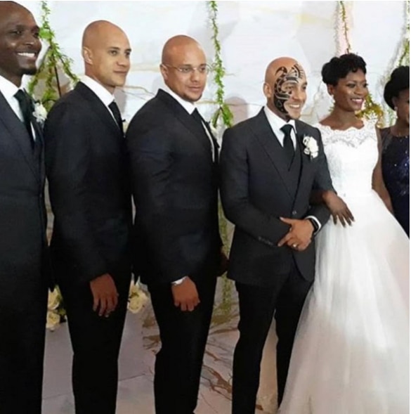 Lovely photos from the events show the DJ without his trademark face tattoo for his traditional marriage while the white wedding had loads of friends and celebrities in attendance, including IK Osikioduwa who was part of the groomsmen.