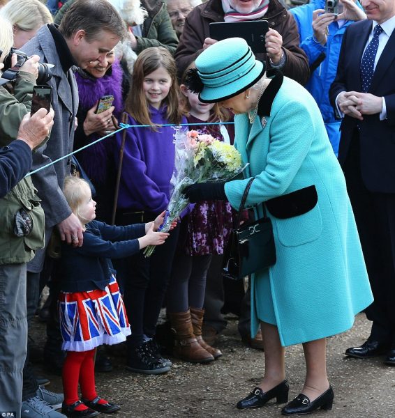 But yesterday she was all smiles as she accepted flowers from well wishers who gathered outside the St Peter and St Paul church in West Newton to pay their respects.