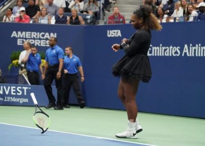 Williams’ first offence and the origin of her meltdown was when her coach Patrick Mouratoglou was caught gesturing to her to move closer to the net early in the second set. Williams would not have it as she blew up telling the chair umpire Carlos Ramos that she’ll rather lose a match than cheat. Her coach later admitted to giving her instructions maintaining that all coaches do it.