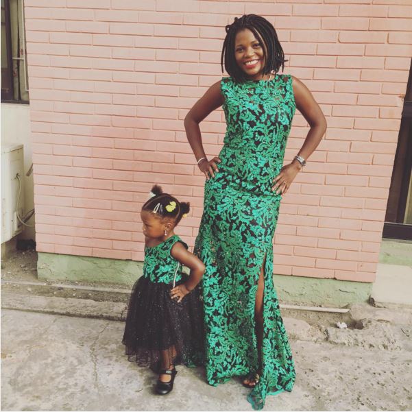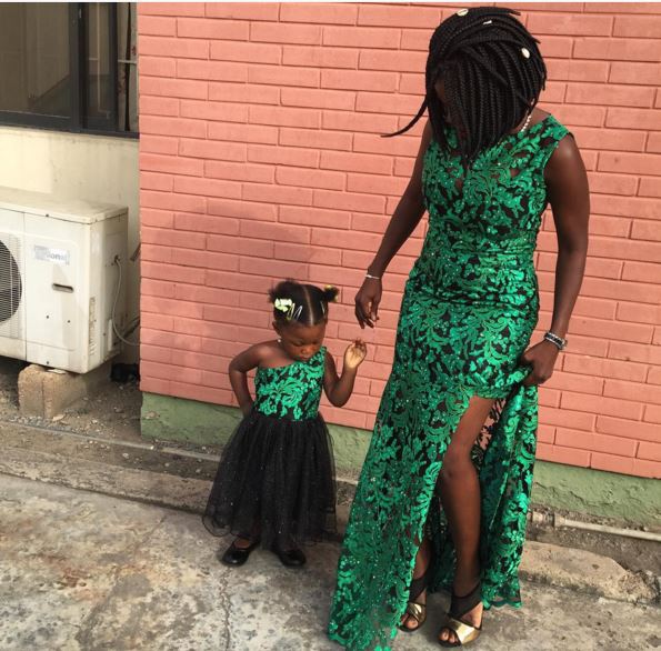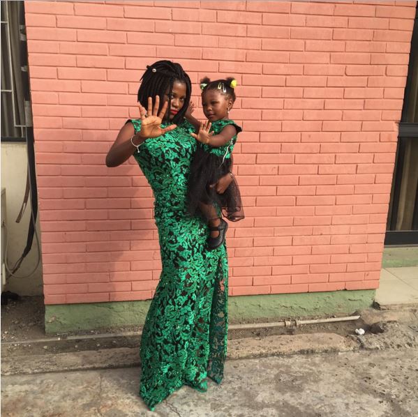 The beautiful mother of one, who used to be a backup dancer for Seun, moments ago posted a photo of herself and 2-year-old daughter, Adara which was taken on Saturday.