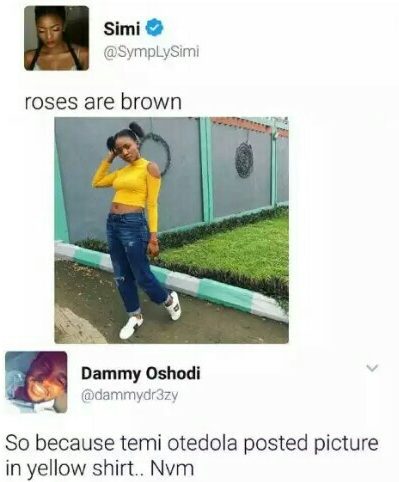 Nigerian singer, Simi, got caught in a little online spat with a Twitter user who said she’s doing everything to dress like billionaire daughter, Temi Otedola.