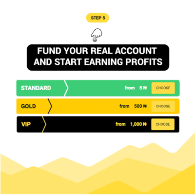 Step 7: After getting used to the platform, switch to your real account, fund your real account and start earning profits