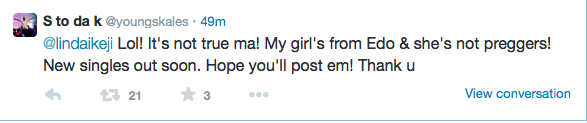 Following news making the rounds on blogs that Raoul John Njeng-Njeng better known as Skales, and his girlfriend are expecting their first child, the Baseline Records act has responded.