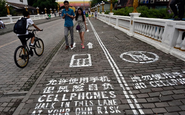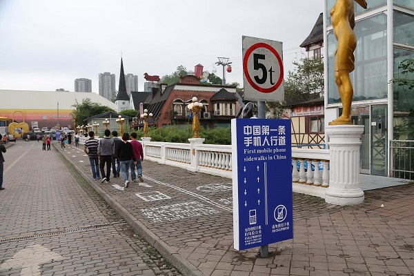 Now, smartphone users have their own lane on a 50-meter stretch of sidewalk in Chongqing, China.
