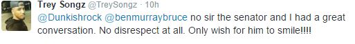 Responding to the tweet, Trey Songz felt Ben Bruce didn’t smile enough in the photo as he wrote;