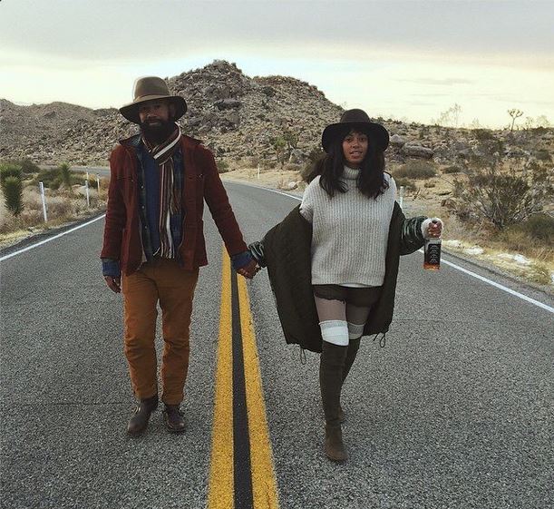 The couple also posed together with a bottle of Jack Daniel’s, and the singer shared the pictures on social media with captions: ‘What other way to bring in the New Year?…Boo…No fucks given… New Year #solange.’