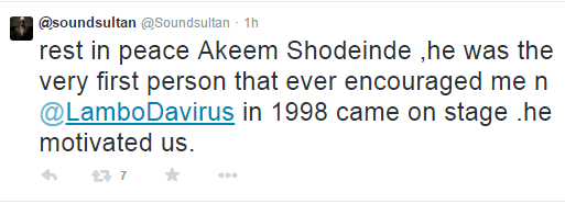 Sound Sultan and DJ Humility have joined others entertainment personalities mourning the death of popular Lagos night club owner, Akeem Sodeinde.