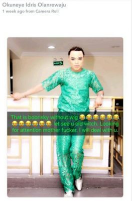 Nigerian male Barbie, Bobrisky and Grety, went at each other on Snapchat basically over who has got the better skin toning cream.