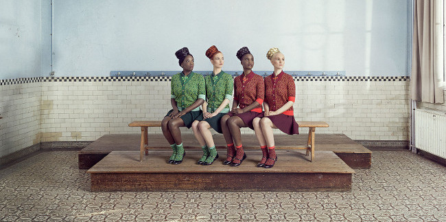 According to Stromae, ‘[the collection] is characterised by a mixture of the meeting of the ‘English school’ cuts, the checker and isometric patterns and the warm colours of the African wax.’