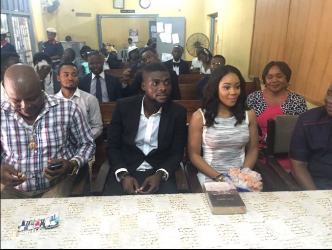 The new couple got married at the Ikoyi registry moments ago in the presence of close friends and relatives.