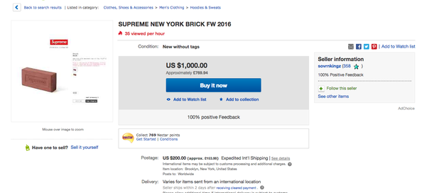The bricks don’t serve any purpose. Supreme would only sell one piece per customer so it’s not likely that any one would be building a Supreme brick house any time soon. So why are people buying?