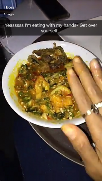 Big Brother Naija finalist, TBoss, schooled a troll who told her not to eat food with her bare hands, expressing her disappointment at the person who made the comment.