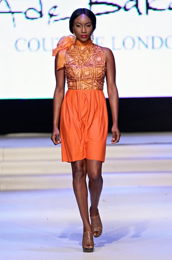 The dress was seen on the runway as worn by supermodel/interior designer, Isio DeLa Vega at the Port Harcourt International Fashion Week, Native and Vogue 2014 in which Ade Bakare showcased his ‘Adire Meets Modernity’ collection.