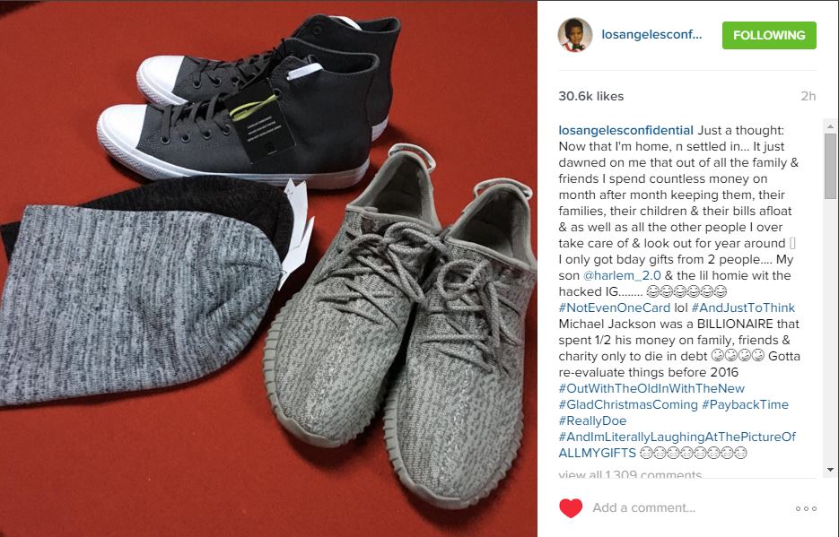 The rapper let his feelings out in a post on Instagram displaying the gifts he received for his birthday.