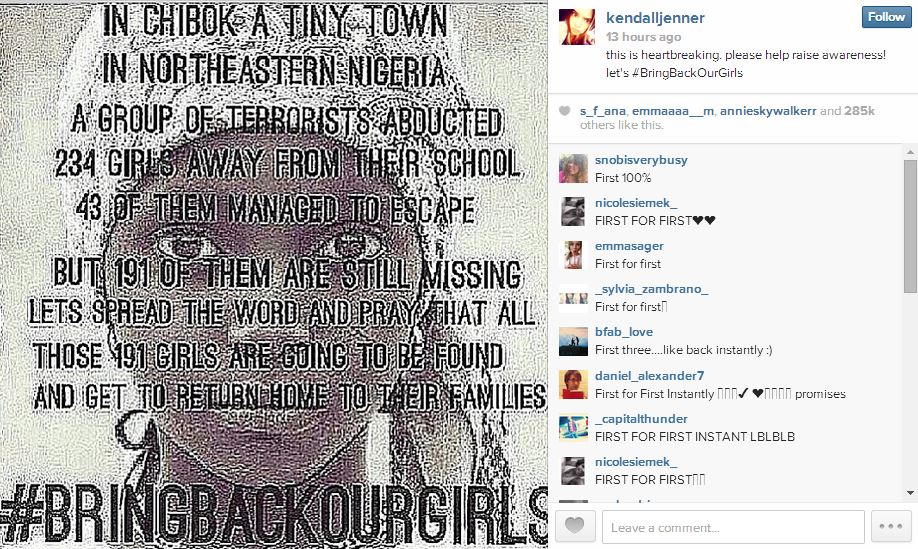 ‘Heartbreaking! Let’s all raise awareness #BringBackOurGirls‘.