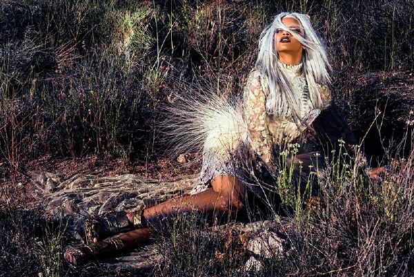 Rihanna, styled by Nadia Rath, had on a grey wig and frosty eye brows and was photographed by Gomillion and Leupold.