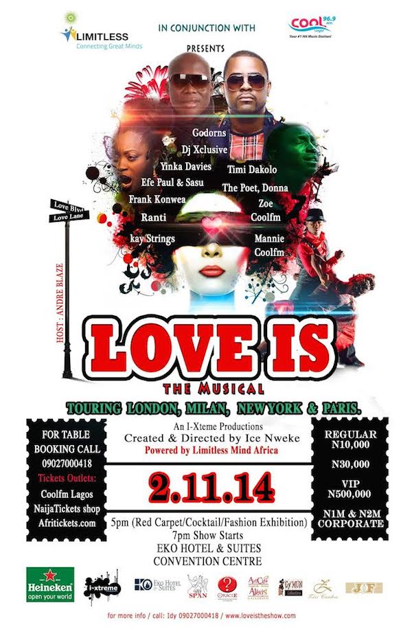 A classy event organized by Limitless Minds Africa in conjunction with Cool FM and Oracle Experience Limited, ‘Love Is…the Musical’ is set to thrill guests in Lagos on November 2, 2014.