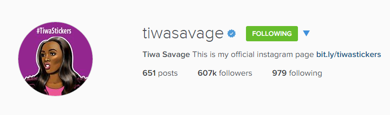 The nursing mother just changed her Instagram handle from @officialtiwasavage to @Tiwasavage. She’s currently the leading Nigerian female act with the highest number on followers on the social media with 607,000 followers.