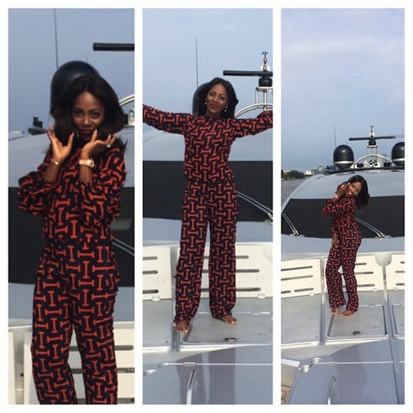 Mavin star Tiwa Savage spent her Monday afternoon chilling on billionaire Femi Otedola’s yacht.