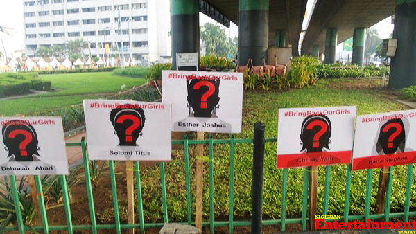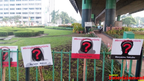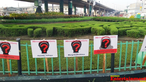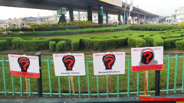 The protest starts at Falomo round about, Ikoyi. 194 Plaques carrying names of the abducted school girls have been arranged around the round-about.