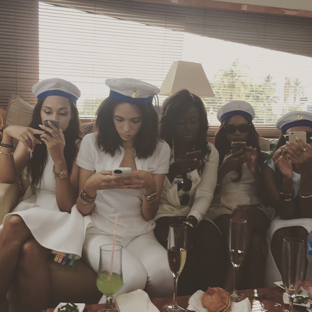 Checkout out celebrity divas showing off their accessories at Tiwa Savage’s ongoing baby shower, which is currently taking place on Femi Otedola’s yacht.