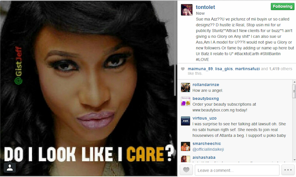 Tonto Dike is however not taking the allegations likely at all, She has just responded to Toyin lawani calling her an attention seeker looking for cheap publicity.