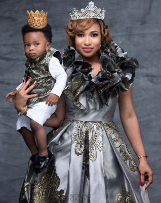 After months of keeping her son, King‘s face away from the camera, Tonto Dikeh finally showed his face to celebrate him as he turns one.