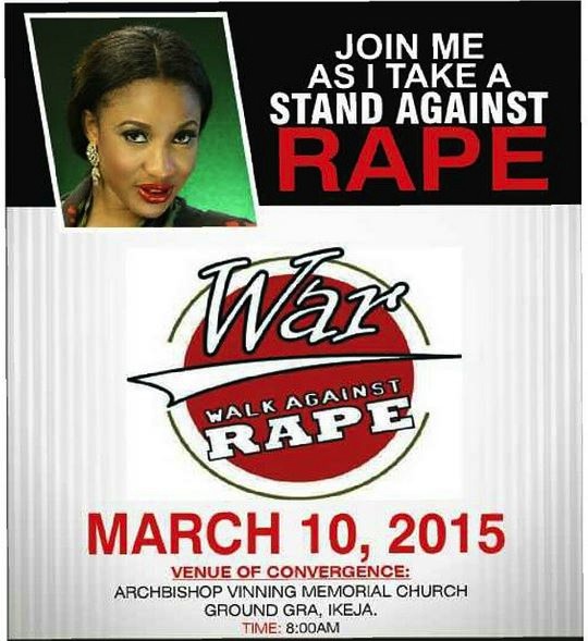 Nollywood actress and singer, Tonto Dikeh took to social media today, March 9, 2015 to announce and invite all to join her as she takes a stand against rape in Nigeria with a special campaign tagged Walk Against Rape (WAR).