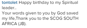 Joining other well wishers to send birthday messages to the controversial man of God who was born on June 12, 1963, is controversial Nollywood actress, Tonto Dikeh.