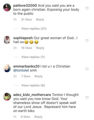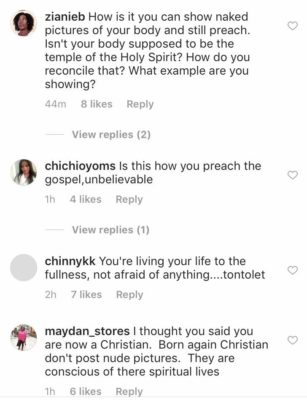 Although the actress posed naked to show off her glowing skin from the continuous use of a cosmetic brand, her fans are not having it with her, especially since she declared that she had become a born again Christian.