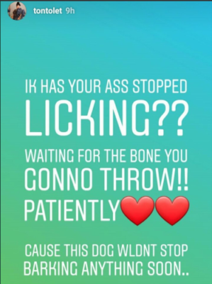 Tonto, notoriously known to never back down from internet face-offs, replied him via Insta-stories that he had better not be available as he can not finish the call. She also went to claim that IK Ogbonna is gay.