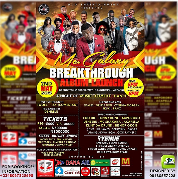 Fast rising Nigerian comedian and singer, Innocent Udeme Udofot otherwise called MC Galaxy is set for the launch of his debut album titled Breakthrough.