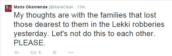 After the tragic robbery attack which saw not less than 4 policemen and three civilians killed at close range yesterday, March 12, 2015, several celebrities have taken to social media to comment and lend support to the victims and their families.