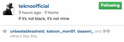 Making it known that the automobile belongs to him in a creative way, the artiste posted the picture with the caption: ‘If it’s not black, its not mine’.
